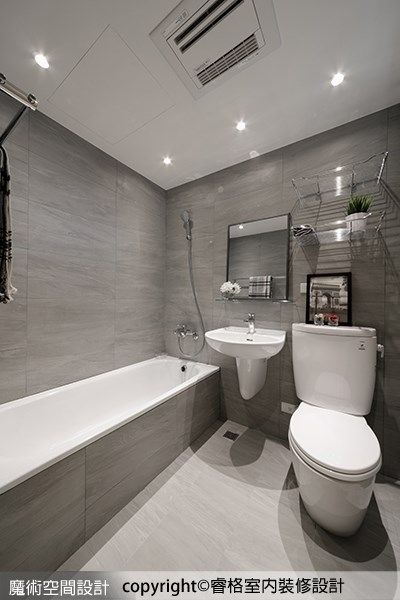 ▲以灰色板岩磚打造的衛浴室,清爽好整理。