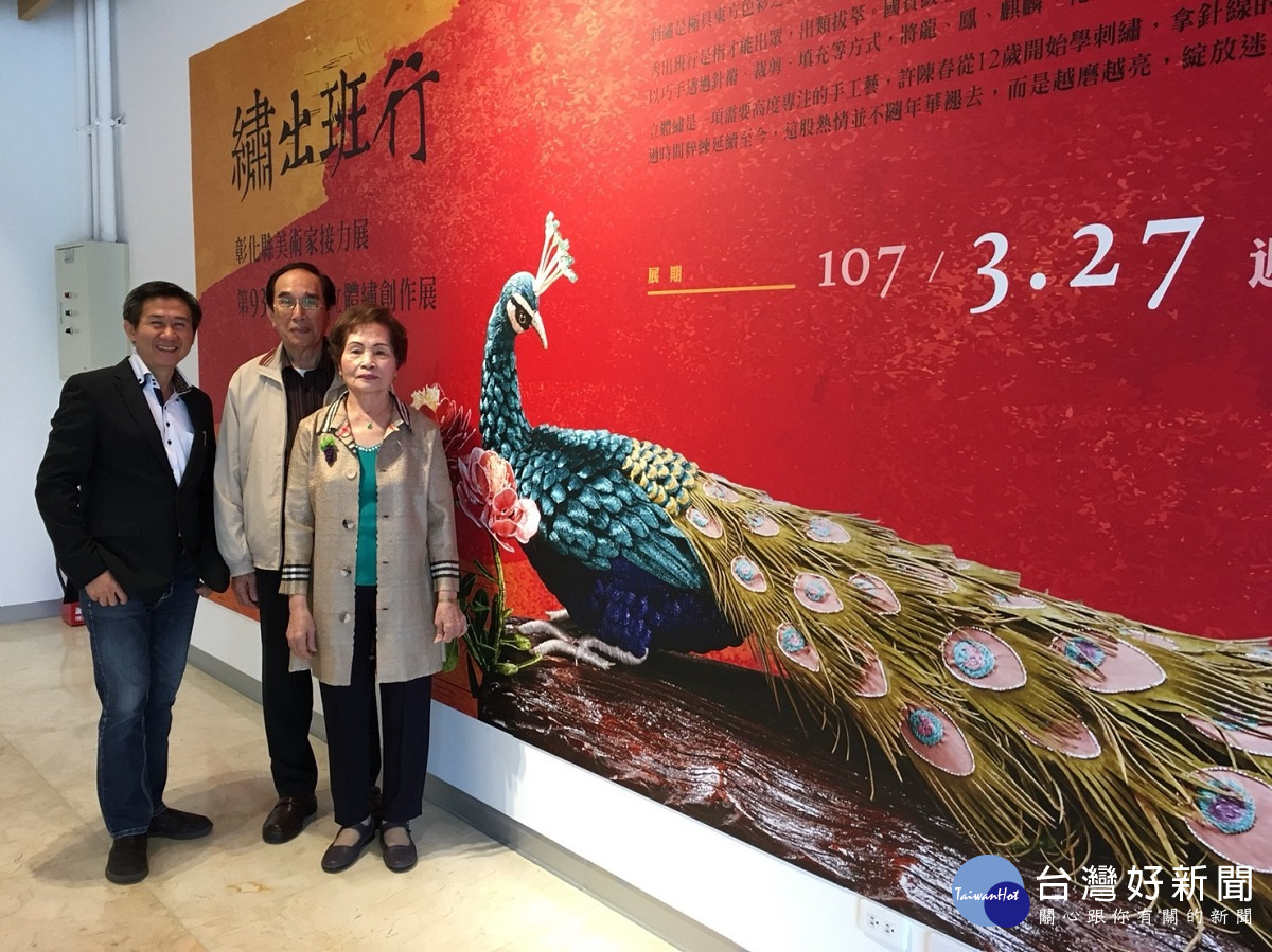 彰化美術館展現多元藝術之美,邀請國寶級高齡80歲許陳春大師,以「繡出班行」為題展出53幅「立體繡雕」,以巧手將龍、鳳、花、鳥與麒麟等傳統平面刺繡,幻化成獨創的立體繡雕,呈現栩栩如生、五彩繽紛錦繡世界。
