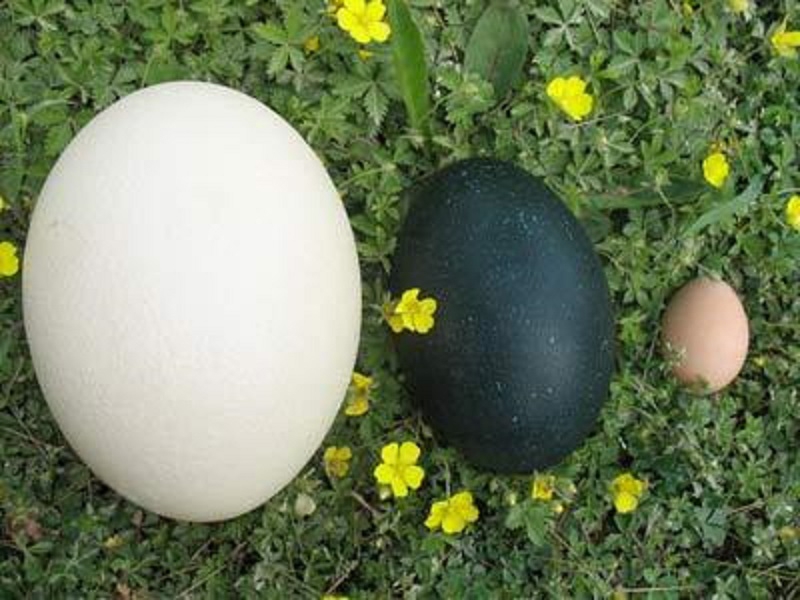 鴯鶓:鴯鶓蛋重量約為450~650公克,呈深綠色,表面有皺痕,孵化期約61天,另外特別之處是由雄鳥獨立完成孵蛋及育雛,且孵蛋期間不吃不喝,完全靠體內脂肪維生,真是好偉大的父愛。
