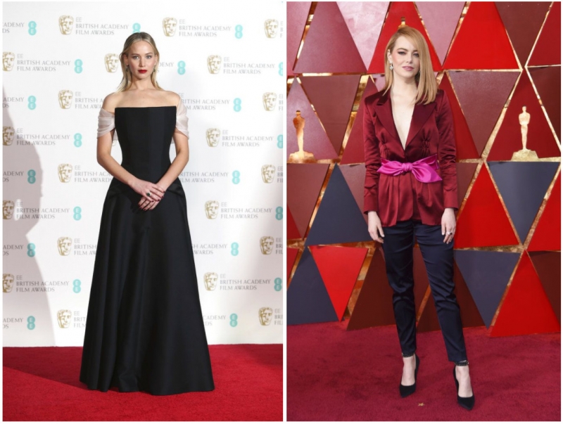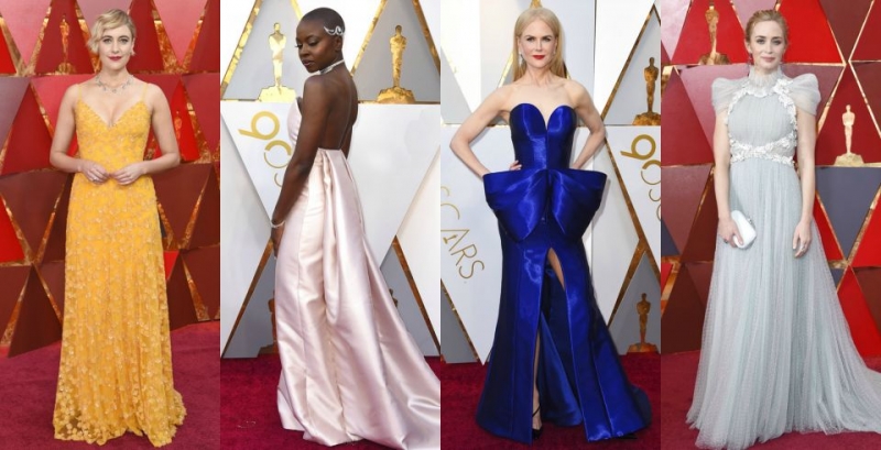多數女明星,特別是入圍最佳女主角的明星,包括瑪格羅比Margot Robbie、梅莉史翠普Meryl Streep、法蘭西絲麥朵曼Frances McDormand、莎莉霍金斯Sally Hawkins和莎雪羅南Saoirse Ronan,早在10月份就開始準備挑選禮服。造型師連絡設計師提供服裝,或是開始討論訂做禮服。女明星出席一個活動,就有60件不同的禮服讓她挑選,造型師必須和服裝設計公司確認,沒有其它女星穿同樣的禮服。還記得2013年奧斯卡最佳女配角得主安海瑟威Anne Hathaway,因為要避免撞衫,臨時改穿Prada禮服出席盛會嗎?