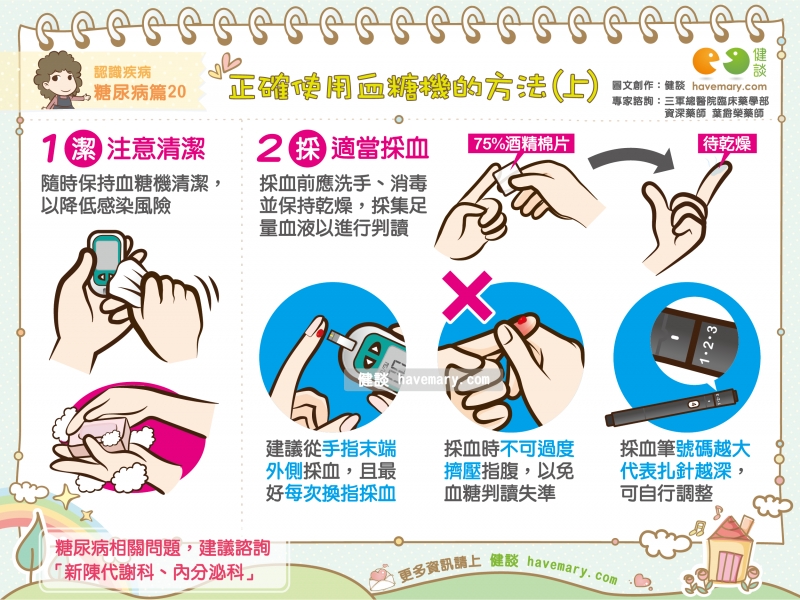 除了上述兩項重點外,另外「校」、「保、「維」三步驟將於「正確使用血糖機的方法(下)」進行完整說明!