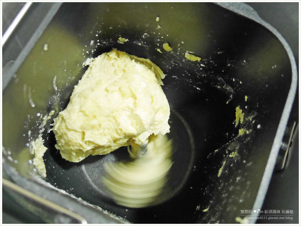 使用麵包機時,千萬別忘了放入攪拌葉片喔 (我曾經忘了放啊!! 好好笑~)