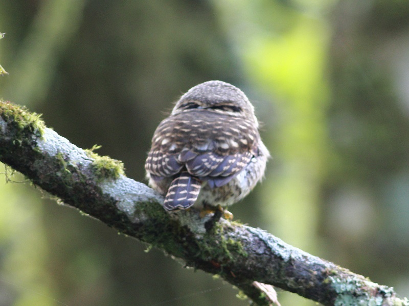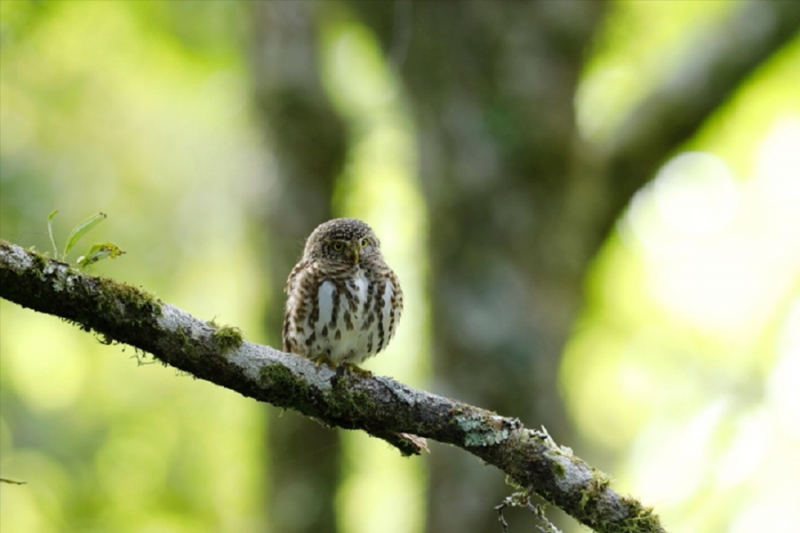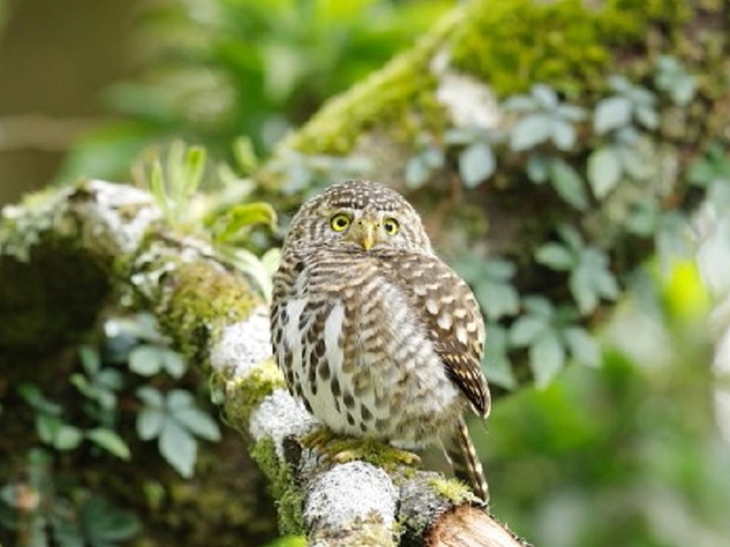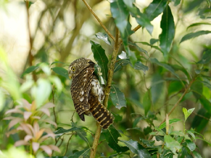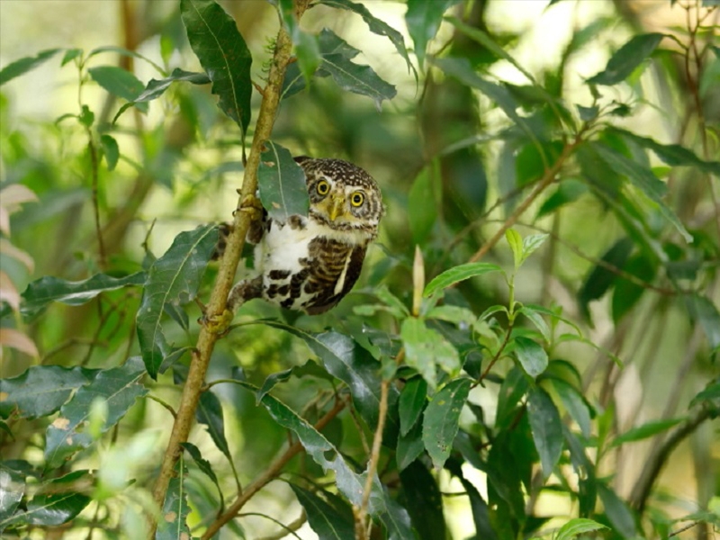鵂鶹是臺灣特有亞種,屬於第二級珍貴稀有鳥種,是留鳥(整年均可見,不隨季節變化遷徙的鳥,且在野外自然繁殖),又名領鵂鶹,鴞形目,鴟鴞科,也是臺灣體型最小的貓頭鷹,大約只有拳頭大小,身長約15~16公分。但可不要被牠那小巧可愛的外型給欺騙了,鵂鶹是猛禽類,是不折不扣的狠角色,只要有牠的出現必造成附近的鳥群騷動,其補捉獵物的功夫,因嘴爪彎曲銳利,如同老鷹捉小雞般的輕而易舉,即使比自己身型稍大的畫眉鳥,也能輕易制服,主要獵物除了小型鳥類外,也包括昆蟲、蚯蚓、蛙及蜥蜴等。