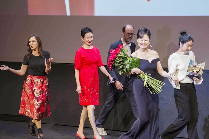 林青霞在當地時間4月21日晚由另一資深電影人施南生陪同下出席開幕禮,施南生本身亦是第17屆金桑獎的得獎者,過去也合作過很多膾炙人口的電影,這次由她陪同林青霞遠赴義大利,並由施南生擔任頒獎者,由她頒贈這個獎項給林青霞,意義非凡。對於獲頒發終身成就金桑獎,林青霞在頒獎現場表示:「今年電影節成立二十週年,而主演《重慶森林》的我,有緣在此得到這終身成就獎,相信這對我、對王家衞,對遠東電影節的Sabrina 和Thomas 都具有深厚的意義。Udine電影節絶對是遠東電影人的最大福音!」當年《重慶森林》觸動了Sabrina Baracetti 和Thomas Bertacch 這兩位義大利人,日後在義大利創辦遠東電影節,成為創辦核心人物,而林青霞除了感謝影展創辦人之外,也藉此特別感謝曾合作過的瓊瑤、宋存壽、郁正春、徐克、張叔平和施南生等港台電影人。