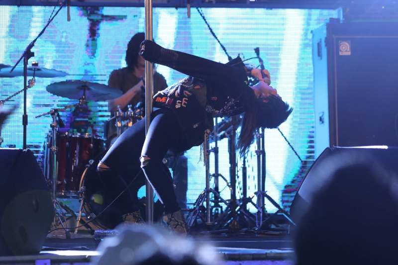 讓現場粉絲情緒超嗨的報以熱情掌聲,接著熱唱「好女孩」,不少老外粉絲慕名而來,現場跟著嗨唱,熱度不斷加溫,何超儀接著熱唱「何飄移」,「可憐蚤」與「指鹿為馬」等搖滾金曲,熱情粉絲將現場擠爆,最後何超儀驚喜飆唱謝金燕在香港的熱唱夯曲「嗶嗶嗶」,改編成「嗶嗶嗶」搖滾版,更以傳奇金屬經典團Metallica 的「Enter Sandman」做前奏改編致敬,展現震撼的搖滾風暴作為飄移舞台巡迴最高潮,更讓台下搖滾樂迷驚艷不已!何超儀舞台上即興的在鋼管上熱舞演唱,狂野的與鋼管合而為一,化身搖滾女神征服鋼管,何超儀嗨唱到全身順著鋼管而移動,貼地熱唱,為演唱會帶來最高潮,台下粉絲大暴走的跟著熱舞,不少粉絲激情喊著「女神」!何超儀則激動的直說「我愛你們」!而在舞台車上,熱力演出,搖滾威猛的何超儀在鋼管演出時,因滿手的戒指與麥克風等,金屬跟鋼管接觸串聯,而產生靜電,讓何超儀演出時不斷的被電到,何超儀直笑說「真的有被搖滾音浪給電暈了」!