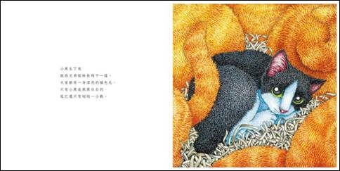 故事描述一隻小黑貓出生在橘貓之家,因為長相不同而備受冷落,離開家在外流浪,卻在寒冷的冬夜裡遇見憨傻的大白,還救了大白一命,從此彼此陪伴。一路上牠們遇到不少難關,都能一一克服。簡單溫馨的故事中,可以窺見毛小孩之間的純真情誼,更希望能藉由這個故事,傳達跨越族群與偏見的寬容態度。