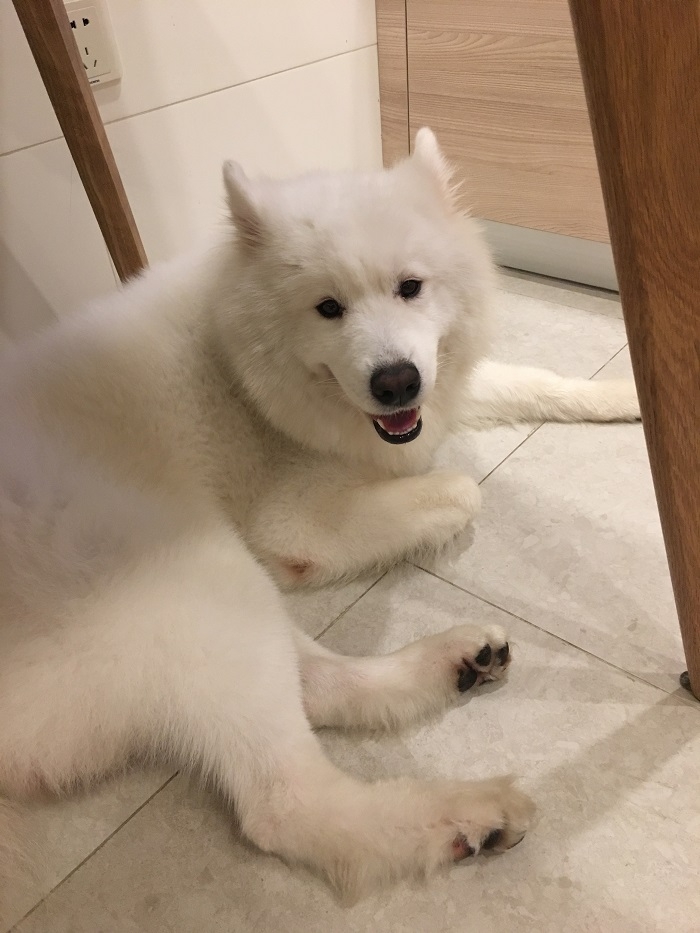 繪本中的兩隻動物主角――小黑與大白,在現實世界中都有真實本尊。其實在這本繪本付印前夕,陳可嘉還特地去了一趟上海,為的就是探望她心愛的「大白」。大白是隻高顏質的薩摩耶犬,今年三歲,是陳可嘉上海朋友的狗,貪吃又頑皮,雖然個兒大,膽子卻很小,憨傻的模樣相當討人喜歡。
