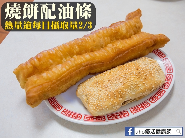 衛生福利部桃園醫院營養師洪凱婷表示,常見的中式早餐,燒餅搭配油條約相當於4至5份全穀根莖類加上4份油脂類,以每日熱量需求1800大卡,每日油脂類攝取6份計算,光早餐就佔了2/3,且缺乏豆魚肉蛋、蔬菜、水果類。