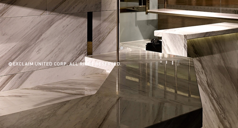 (圖)拋光大理石製成的吧台,倒映著天花下方的燈飾