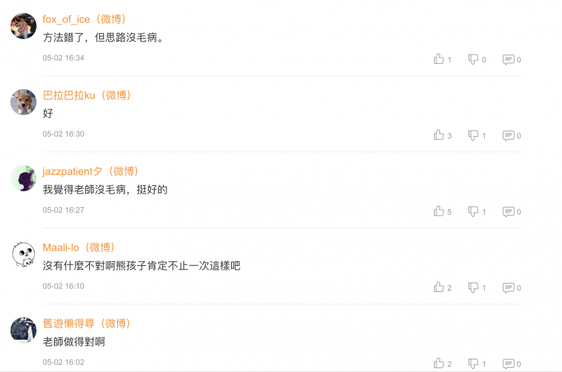 這視頻一上網便引起網友熱烈討論,有許多網友覺得老師這樣的做法沒有問題,支持以其人之道還治其人之身,認為「人不犯我我不犯人。這件事我覺得老師偏激,但這個教育的路子沒錯,否則女生心裡怎麼想。教育的孩子會越來越軟弱」
