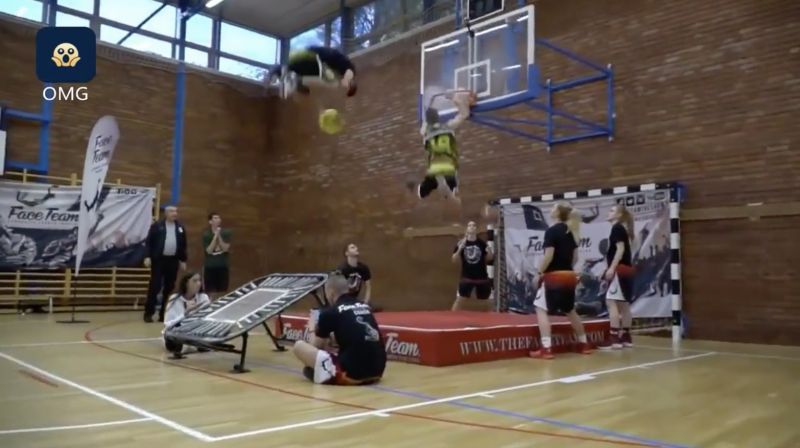 最遠的前滑彈簧床灌籃是8.1公尺,由Kerim Daghistani在布達佩斯完成。