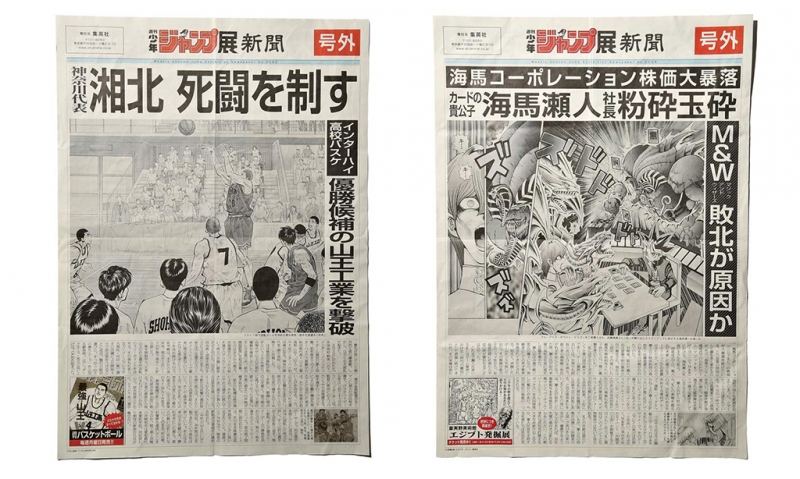 除此之外,橫濱方面則派發《灌籃高手》之湘北死闘撃敗三連霸山王之號外,以文字全程描述這場發生在 8 月 3 日的經典決賽,大圖的櫻木致勝一 SHOT 帶來無窮回憶,實在令人感動;而這份《灌籃高手》號外除了當天發光外,更在日本拍賣網給炒至 25,000 円,可見其吸引力依然歷久不衰。《遊戲王》「號外」報紙也在秋葉原發放,同樣大受歡迎,要收齊一套四份也不容易呢。這次「週刊少年 JUMP VOL.2」展覽除了帶來視覺震撼外,森美術館之會場內還大量紀念品上架,其中 TSUM TSUM 形態的《灌籃高手》公仔、場刊、閃卡套裝⋯都是必入手的 HOT ITEMS,香港也有少量入荷,FANS 絕不可錯過。