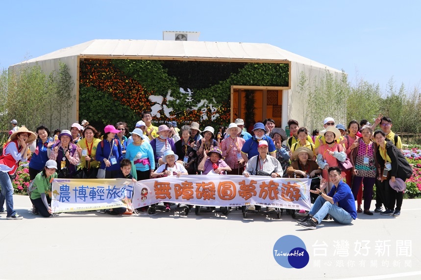 今年圓夢旅遊專車搭配桃園農業博覽會,陪伴梧桐樹日照中心、敏盛醫院附設護理之家和怡仁居日照中心數十位行動不便的長者一同出遊,沿途除了貼心完善的無障礙環境設施與動線規畫外,整個展區的植物造景、裝飾藝術,都令人目不暇給。