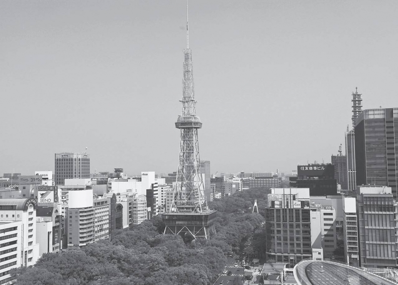 名古屋意外的沒什麼高層建築,名古屋電視塔長年都保有觀景台的魅力,二○一三(平成二十五)年獲得日本夜景遺產的認定,地面九十公尺的觀景台高度,最適合觀察街頭表情的變遷。開業時的宣傳詞極具氣勢:「看到了看到了/看到了渥美/看到了伊勢/還有阿爾卑斯」,結果廣告效應十分猛烈,休息區等還未整理好的樓梯間,全都擠滿了人。現在從觀景台可以看到腳下的久屋大通公園、綠洲21,還可遠眺伊勢灣和御嶽山,地面一百公尺高處也有室外觀景台。