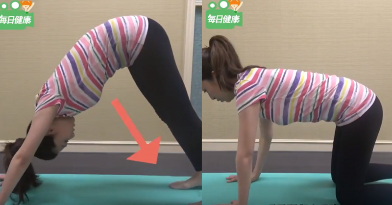 3.經過3~5個呼吸循環後,吐氣回到第一個動作(四足跪姿)