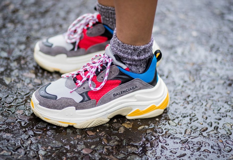 Balenciaga的Triple S 可以說是這波老爹鞋流行起來的始祖吧!這雙取材自跑鞋、籃球鞋及田徑鞋的經典厚鞋底,和保留初代復古輪廓的同時,仿舊刷色和中性風格,很快就成為街拍潮人的流行新寵,也讓Balenciaga紅出了新高度!