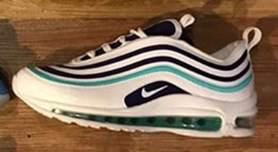 Nike的 air max97,反光色調和流體線條,靈感來自日本的新幹線,從90年代一路紅到現在,它也是首次將全掌的可見式氣墊完美呈現,金屬色調的鞋面與流線型的色塊靈感皆來自於日本的新幹線高速列車,反光線條使得Nike Air Max 97在燈光下看起來十分引人注目。這雙鞋完美詮釋了1997年不論在音樂、電影和時尚領域都追求極致誇大的年代,成為這一時代的經典設計典範。