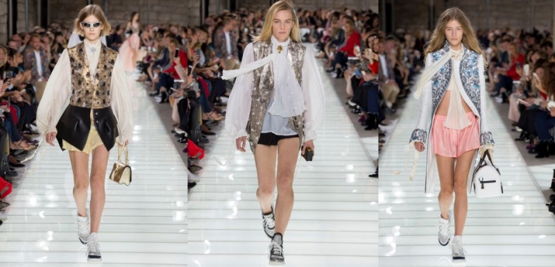 不如搭配運動短褲和古典風格的燈籠袖襯衫吧,雖然是時髦又對比強烈的穿搭,但同時也很容易駕馭喔,也可以和Louis Vuitton秀上一樣加一件長背心,就更加有型有款了!