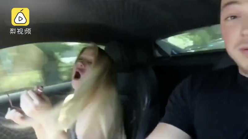 根據梨視頻上OMG!上傳的這段視頻,一男友趁著女友在副駕駛上化妝、喝奶茶、吃冰淇淋的時機,猛然踩下剎車並將影片錄影上傳...