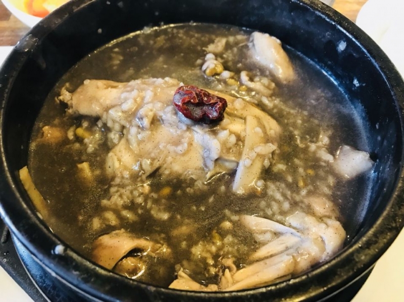 位於濟州中央女高對面的餐廳,以黑米蔘雞湯為特色,也別於一般韓國常見的白米蔘雞湯,反而為餐廳創造高人氣,米飯與雞肉都煮得軟嫩入味,另外來到這裡還可以點個鮑魚炒鴨肉享用,一次吃到餐廳人氣的兩種美食,除此之外,店家也有一些常備小菜以及餐後的飲品享用。