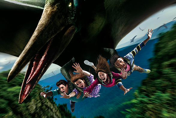 路線全長1,124公尺,初次落體的落下高度為37.8公尺,光是看到這兩個驚人數字是否已經熱血沸騰了呢?這個世界最長、最大高低差的雲霄飛車,最特別的一點即是當遊客坐入以無齒翼龍為造型打造的列車後,會用俯身的方式進行體驗,讓你可以感受到360度大迴轉、翱翔天際的刺激感受。