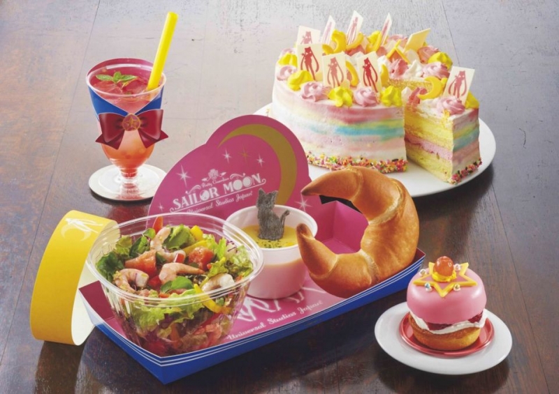 身為美戰迷當然不能錯過裝有月亮牛角麵包、露娜玉米濃湯跟葡萄柚鮮蝦沙拉的「美少女戰士餐盤組」;除此之外,日本環球影城也將美少女戰士的變身器化作精緻可愛的「草莓蛋糕」;另外也推出結合莓果、開心果與鳳梨的「美少女戰士彩虹漸層蛋糕」以及含有果粒並配戴水手制服杯套的「檸檬蘇打飲料」。