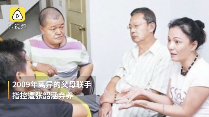 事件起因於一則新聞視頻報導指出:「張韶涵舅舅近日帶著坐輪椅的張韶涵父親現身控訴,稱張韶涵此前答應的『每月付贍養費和給父母各買一棟房』都未兌現承諾,不排除告其棄養。張韶涵舅舅透露稱張父晚景淒涼,自己看不過去才出來說話。」