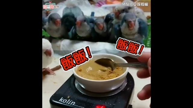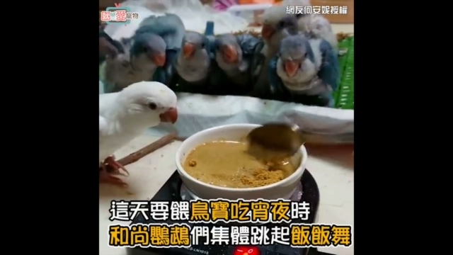 和尚鸚鵡為了吃飯飯,紛紛跳起求飯舞,只見他們狂點頭的招牌動作,萌翻不少網友。