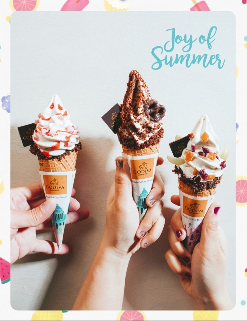 另外,5月18日至5月31日Godiva也將在全台10家門市(台北-忠孝生活形象店/板橋大遠百/信義A8/微風廣場/微風南京/林口MITSUI OUTLET、台中大遠百、新竹巨城、高雄大魯閣、台南南紡)再度推出人氣的「客製化霜淇淋」,將品牌經典的3種巧克力霜淇淋(香草白巧克力霜淇淋、雙重巧克力霜淇淋、黑巧克力霜淇淋)、4種獨特醬料(巧克力醬、焦糖醬、荔枝醬、草莓醬)、8種配料(巧克力餅乾脆、綜合乾果、綜合果仁、新鮮葡萄水果片、GODIVA巧克力豆、GODIVA蝴蝶餅、焦糖卷形巧克力、草莓卷形巧克力),12選2讓客人自由搭配,不論是想單獨加配料、醬料,還是配料與醬料混合都可以,重點是客製不加價,每支依然維持NT$200。如此限時又獨特的活動,巧克力愛好者別忘了記好時間準備行動。