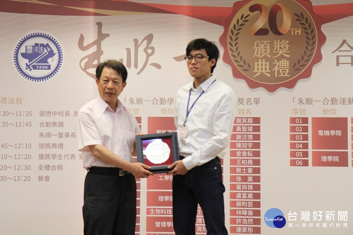 交通大學張懋中校長表示,「朱順一合勤獎學金」過去連續20年來獎勵學業及體育表現傑出的同學,共計431位學子受惠,累積總發放獎學金高達3仟7佰萬元,朱順一學長熱心捐助,提攜後進不遺餘力,實為交大人之表率。本屆(107學年度)「朱順一合勤獎學金」全校共計有21位得主,包含15位同學獲得「學業優異獎學金」(每名獎額為新台幣12萬元);6位同學獲得「運動績優獎學金」(總額為20萬元),同時,每位獲獎同學獲頒純銀獎牌。