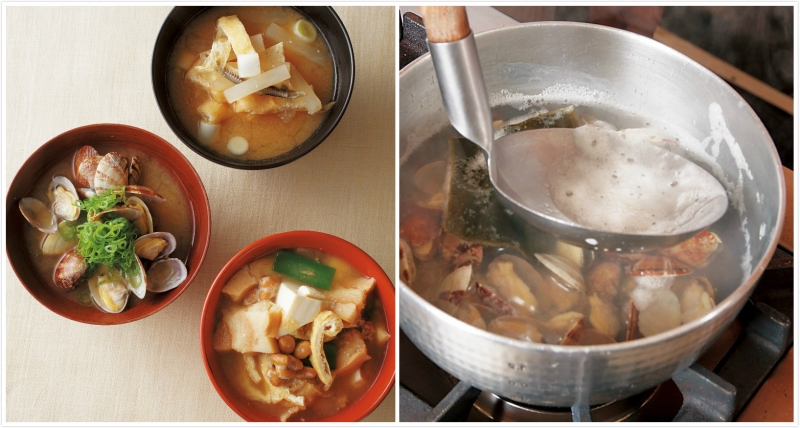 在這裡為大家介紹三種味噌湯。首先,第一道是滿滿鮮味的蛤蜊味噌湯。