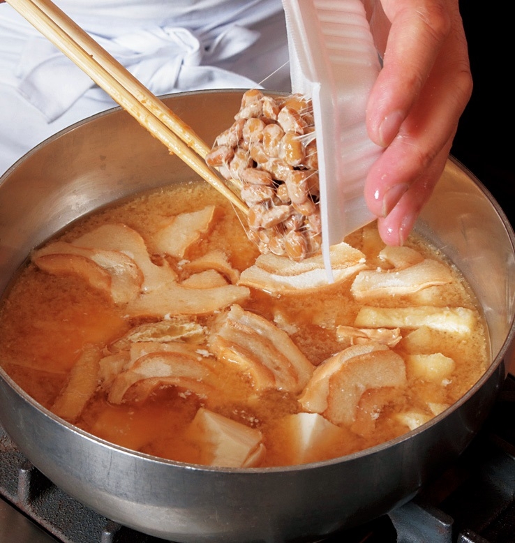 其次是以有「畑之肉」美譽的味噌熬煮,並用豆腐、納豆、日式豆皮等大豆加工品為主要食材,蘊含豐富蛋白質的味噌湯。聽聞日本頂尖運動員在比賽前會用這道味噌湯補充營養,堪稱是一道最強料理。