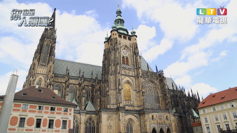 從遠處看到高聳的尖塔,走近映入眼前是大門華麗圓型的「玫瑰窗」,正是捷克境內最大的教堂〈聖維特大教堂〉。圓頂羅馬式加上哥德式的金碧輝煌建築,將會在《你也是人類嗎?》以怎麼樣的故事呈現呢?