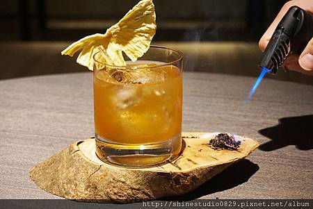 以威士忌綴以柑橘苦精、鳳梨與金棗、烏龍茶的糖漿,並搭配烏龍茶與龍眼木的燻香杯。