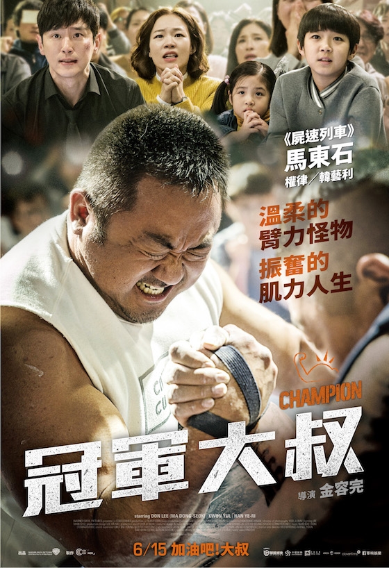 韓國熱血感人電影《冠軍大叔》,由《屍速列車》中可以一拳擊倒喪屍的力量男神馬東石領銜主演,再加上韓國實力派新生代的權律及韓藝利共同演出,電影中除了馬東石的man power備受期待外,他與權律三度合作,展現出高度喜劇默契,讓電影喜感再加分,權律說:「電影5分鐘就讓觀眾笑一回。」