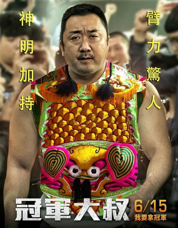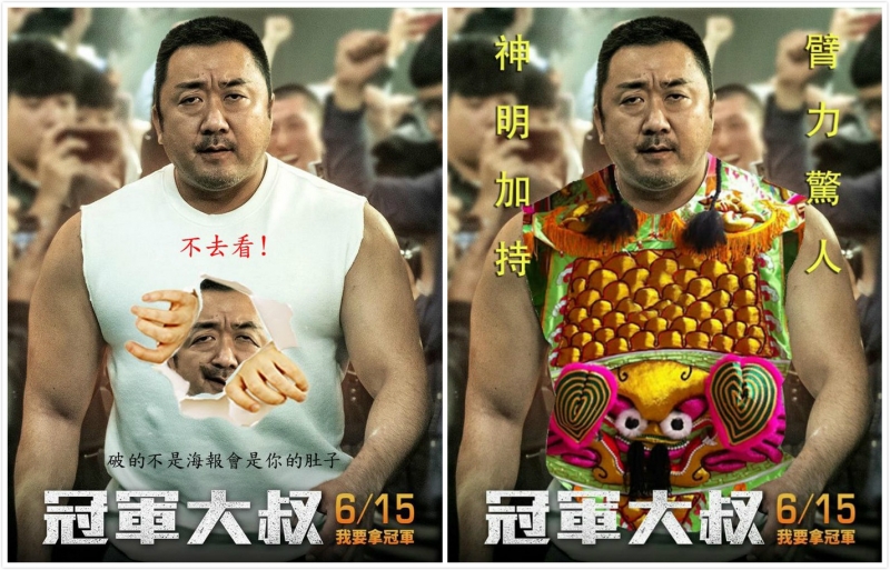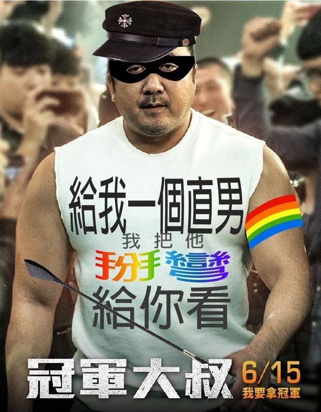 《冠軍大叔》馬東石演技百變,沒想到個人海報也有百搭效果!他的個人版海報「20吋的臂力怪物/他能掰彎一切」十足展現大叔的超強破壞力、肌肉猛男「掰彎」也讓人想入非非。網友發揮瘋狂創意,在白色背心上大作文章,不論是俗擱有力的「哥就是帥」口號,或者是讓三太子背心加身,都毫無違和感;也有網友讓大叔戴上盜匪面具,化身彩虹射手,象徵大叔不論性向完全通吃的無敵魅力;更狂的是讓馬東石與薩諾斯、死侍等今夏最夯超級英雄合體,猛爆氣場不僅征服擂台、更能毀天滅地。完美展現馬大叔的百變形象,以及粉絲們強大的製圖功力跟創意。