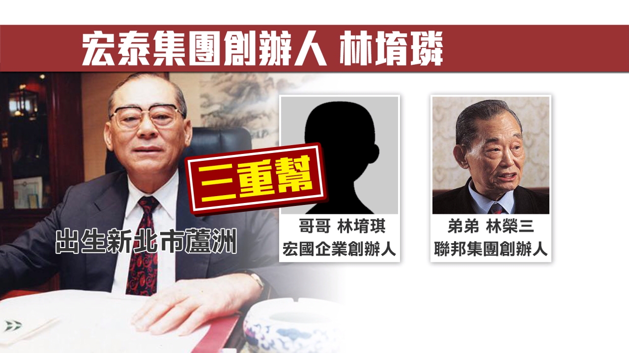 每年除夕夜,總會親自到蘆洲的湧蓮寺祭拜,這位穿著黑西裝、戴著細框眼鏡的,就是宏泰集團創辦人林堉璘,出生新北市蘆洲區,哥哥是宏國企業創辦人林堉琪,弟弟則是聯邦集團創辦人林榮三,在台灣又有三重幫的稱號。