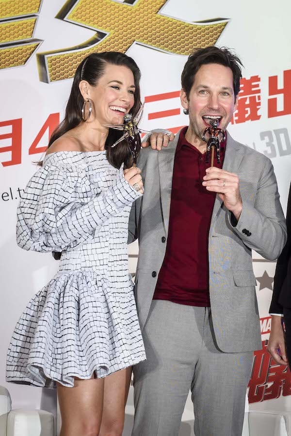 今日(6月12日)於台北文華東方酒店舉辦記者會,也是兩人首次合體與台灣媒體見面,兩人一上台就用中文與現場的媒體問好,已經來台兩天的伊凡潔琳.莉莉去了不少地方,熱愛老式建議和文化的她行程相當道地,除了一口氣嚐試了13種口味的懷舊冰淇淋,還有60年老店喝魚丸湯,笑說自己今天花了很多力氣才塞進記者會要穿的洋裝裡。她還學會用台語說「歹勢」,活潑率真的模樣和電影中精明幹練的女強人形成巨大的反差,逗得全場媒體笑聲連連。而保羅.路德則是嚐試了不少道地台菜,大呼「台灣棒透了! (Taiwan Incredible)」。而記者會舞台上可見一個巨大版的蟻人躲在背板後,右側是一個象徵電影大賣的巨型電影票,左側更有一個曾出現在預告中的巨型鹽罐,保羅.路德與伊凡潔琳.莉莉站在舞台上,彷彿是真的被縮小了一般,從舞台設計就大玩蟻人變換寸自如的核心概念,也讓大家更期待電影當中將如何呈現這樣的視覺概念。