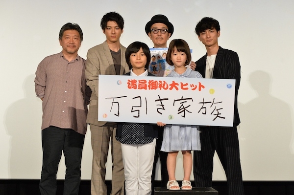 《小偷家族》好評席捲全世界,日本票房也大開紅盤,劇組乘勝追擊於昨日(6/14)晚間在東京舉辦謝票活動。導演是枝裕和率領主要演員Lily Franky、高良健吾、山田裕貴、城檜吏、佐佐木光結共同答謝觀眾支持。Lily Franky不失幽默地率直表示:「我從來沒出席過真正大賣的電影票房告捷活動,我對是枝導演榮獲金棕櫚獎不感意外,但大賣真的讓我非常意外,實在是意想不到啊。」