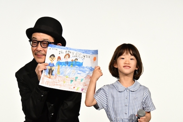 值得一提的是,17日適逢日本的父親節,在片中飾演父親的Lily Franky也「提早」過父親節,現場收到「兒子」城檜吏的親筆信,以及「女兒」佐佐木光結的手繪肖像畫。城檜吏念著他寫的信:「感覺好像多了一個溫柔的爸爸,每次去拍戲都很開心。我的夢想是要變得像Lily先生一樣時髦、溫柔、幽默、演技又好的演員,我最喜歡Lily爸爸了。」Lily聽完先是開心表示:「有點感動。」隨後又搞笑驚爆:「我給你50萬紅包的事情,你怎麼沒有寫進去?」城檜吏也苦笑回答:「我沒有拿到紅包啊…。」此外,致贈Lily手繪肖像畫的佐佐木光結,也感謝地補充:「這是用昨天Lily先生送我的筆畫的喔。」收到畫的Lily也感動說道:「我把平常工作時使用的筆送給她,她用的比我還熟練呢。」看著還未學過漢字的佐佐木光結,她一筆一劃地寫下「小偷家族」字樣,也讓Lily這位「電影中的父親」感慨頗深。