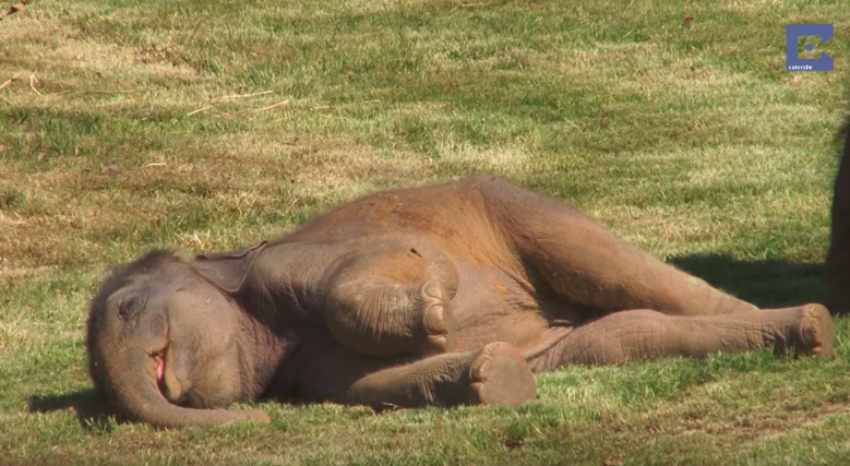 象媽媽著急地用鼻子搖著小象,但象寶寶沒有甦醒的跡象。