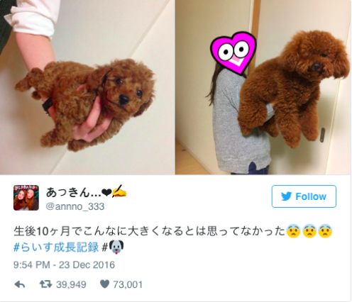 ▼這孩子倒底吃了什麼?「我是中型貴賓呀~麻麻」