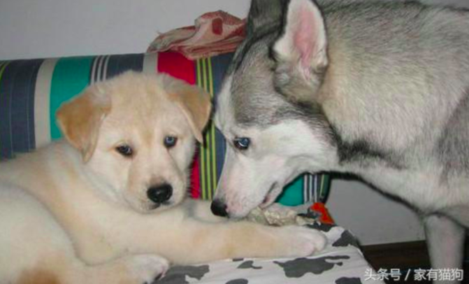 ▼長大以後可能會變這樣(別家的哈士奇+黃金狗狗)
