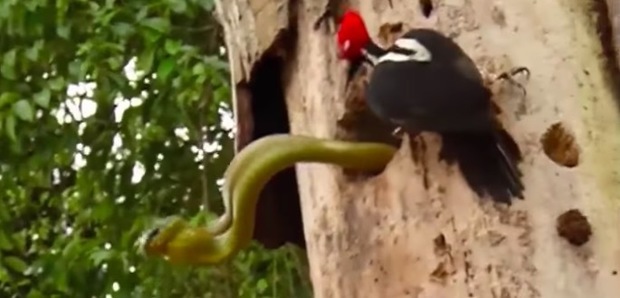 根據Paws Channel的報導,這隻啄木鳥非常的勇敢,對於入侵自己巢穴吃蛋的蛇毫不留情,雖然打不過,但還是勇敢對抗,讓人為牠擔心之餘也感受到偉大的母愛。