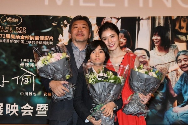 由日本電影大師是枝裕和執導,並榮獲本屆坎城影展最佳影片「金棕櫚獎」的《小偷家族》,即將在7月13日於台灣感動上映。本片不僅入選台北電影節,成為第一部秒殺完售的外語電影,更同時入選上海電影節引發搶票風潮,千個位置在20秒內搶購一空,成為上海電影節最熱賣的作品,更引來網友直呼:「為了看這部,我要用內環的套房來換電影票!」導演是枝裕和昨日(6/23)也率領男女演員城檜吏、松岡茉優出席上海電影節首映。只見松岡茉優身穿紅色連身洋裝美豔登場,成為全場注目「嬌」點。她同時也澄清自己曾在韓國被誤認成是諧星,並轉頭詢問是枝裕和:「我是女演員對吧?!」並獲得導演的認可。是枝裕和並透露自己在台灣導演侯孝賢之外,受到中國名導張藝謀、陳凱歌等導演的啟發,也與同世代的賈樟柯導演頗有深交,並在跟賈樟柯吃飯交流的過程中深受感觸。
