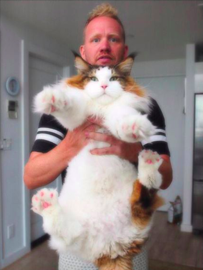 牠的鏟屎官Jonathan Zurbel說Samson是隻非常貼心,但是也很強悍的貓~~~目前五歲的牠已經完全長大囉,Samson還非常有機會成為世界活著最大隻的貓呢!!!