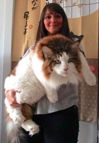 根據LoveMeow網站的報導,住在美國紐約的IG主catstradamus養了一隻巨無霸喵皇-Samson,牠重快要13公斤,有121公分這麼長(是小學生的身高呀)!這隻巨大的緬因貓(Maine Coon),究竟有多大呢,大家一看照片便知!