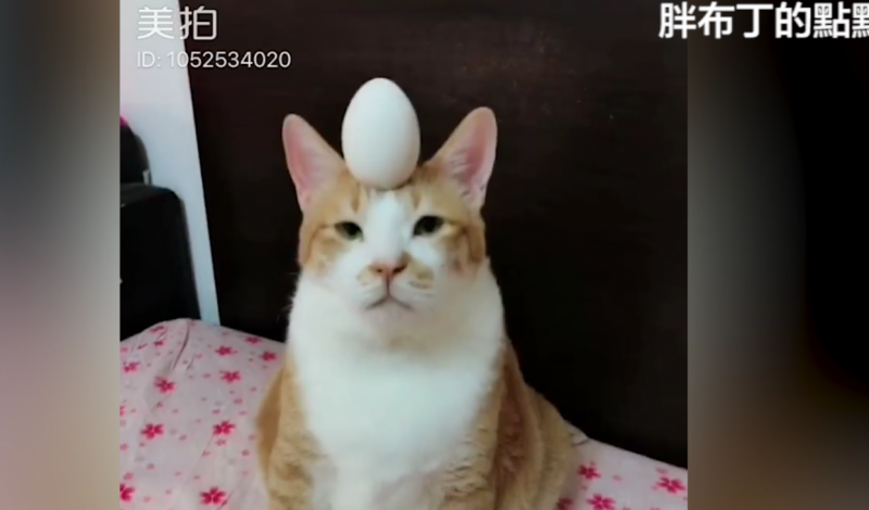 ▲被主人抓來立蛋中(source:影片截圖/胖布丁的點點滴滴)
