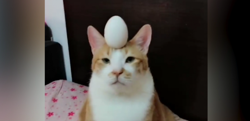 ▲端午節超特別的貓頭立蛋(source:影片截圖/胖布丁的點點滴滴)
