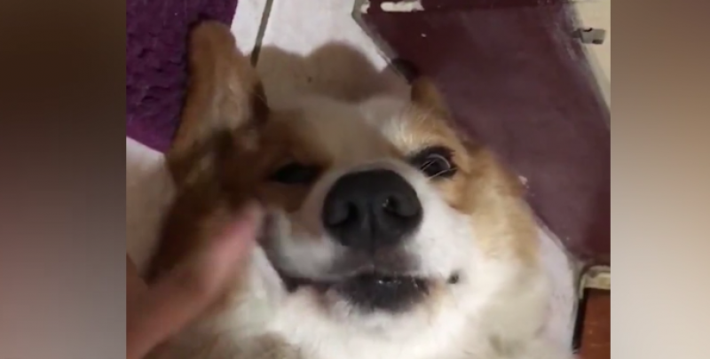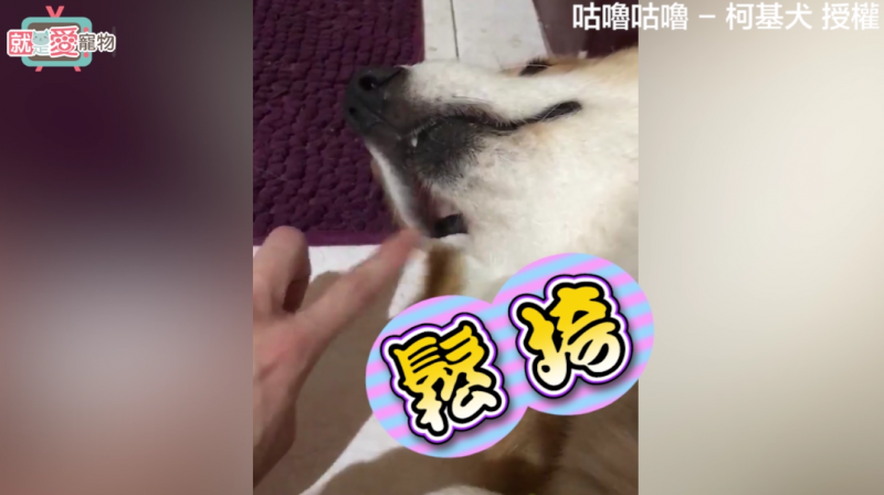 ▲嘴邊肉被玩到鬆垮了。(source:影片截圖/咕嚕咕嚕 - 柯基犬)